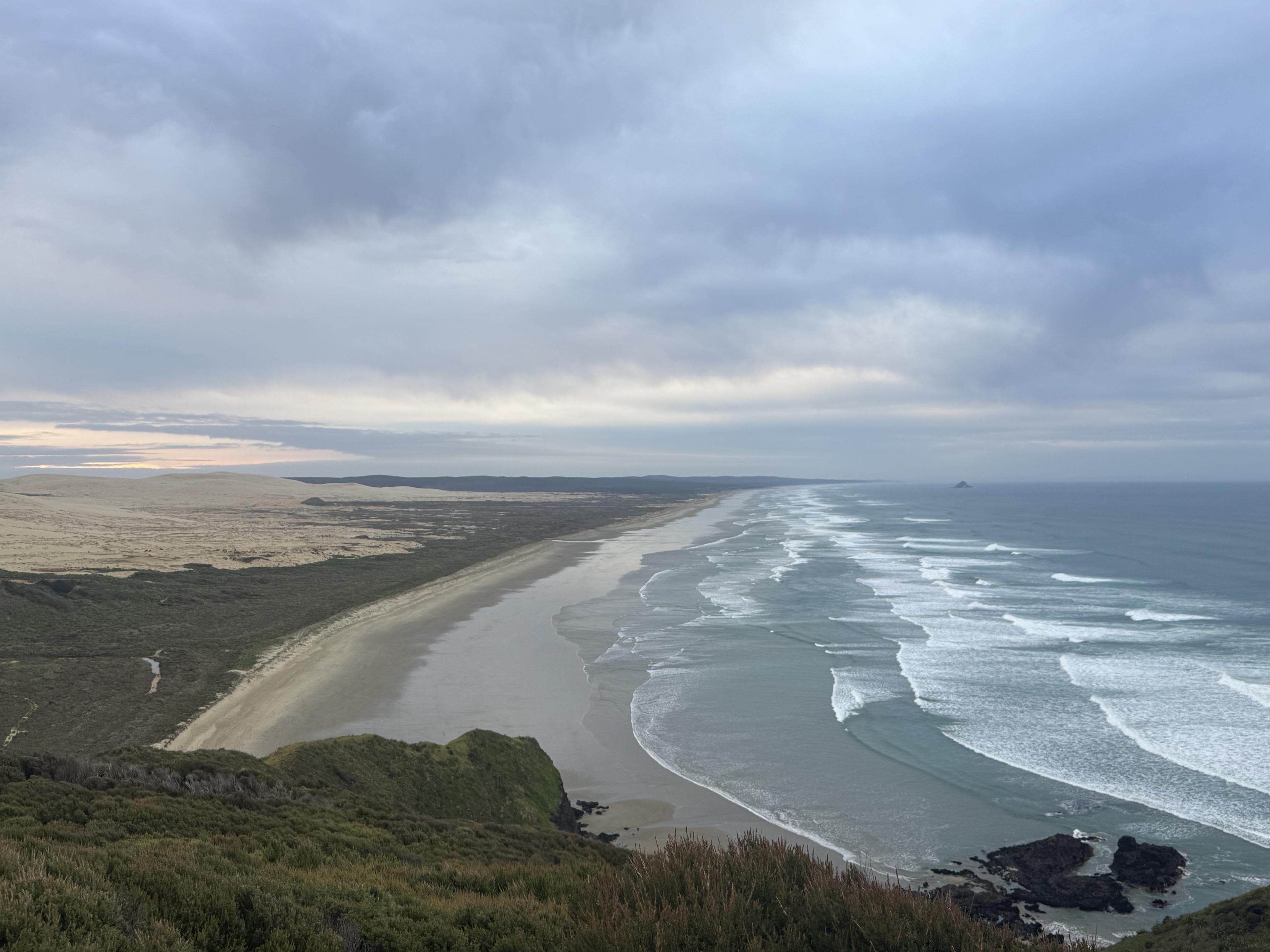 Heute früh unterwegs, um die Ebbe zu nutzen auf 90mi Beach, da die Füße (und dann Beine) sonst sehr nass werden. 28km am Strand entlang etwas langweilig, aber noch ok. Schon wieder um 13 Uhr am Camp, nun Essen und faulenzen…