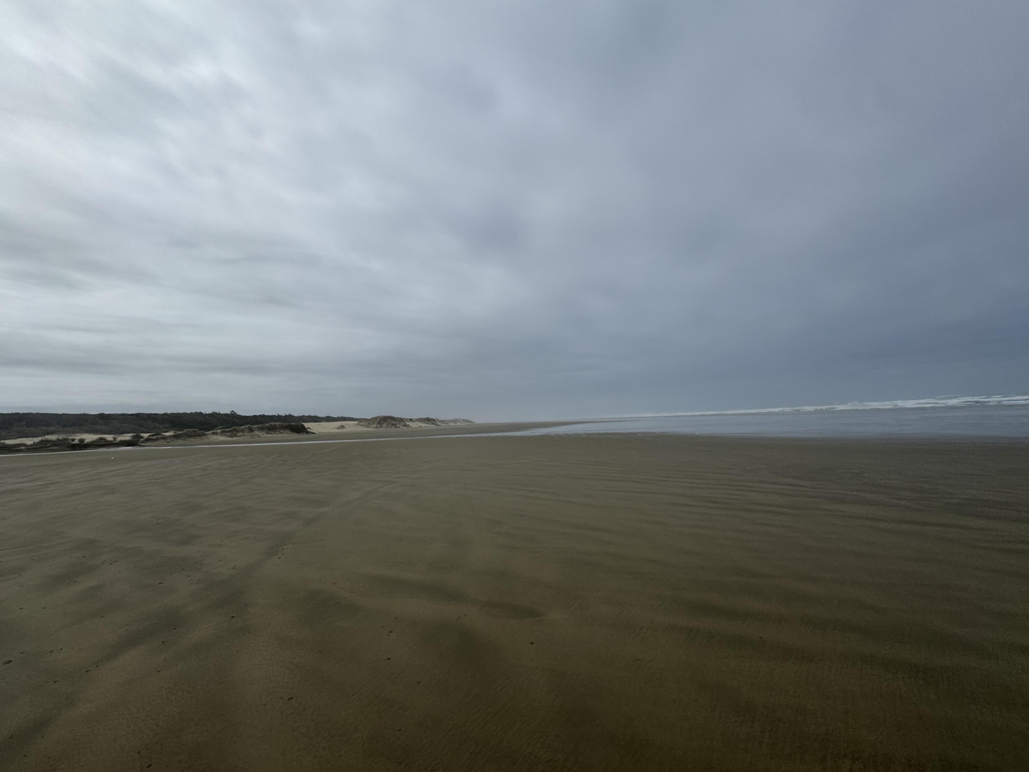 Weiter 90mi Beach entlang. Wieder früh aufgestanden und Ebbe gut erwischt: heute trockene Füße behalten. Trotzdem langweilig, außer Robbie; wenigstens einer Attraktion. Im Camp konnte ich das Zelt gerade noch im Trockenen aufbauen und während dem Duschen {!!!) fing es an zu regnen!