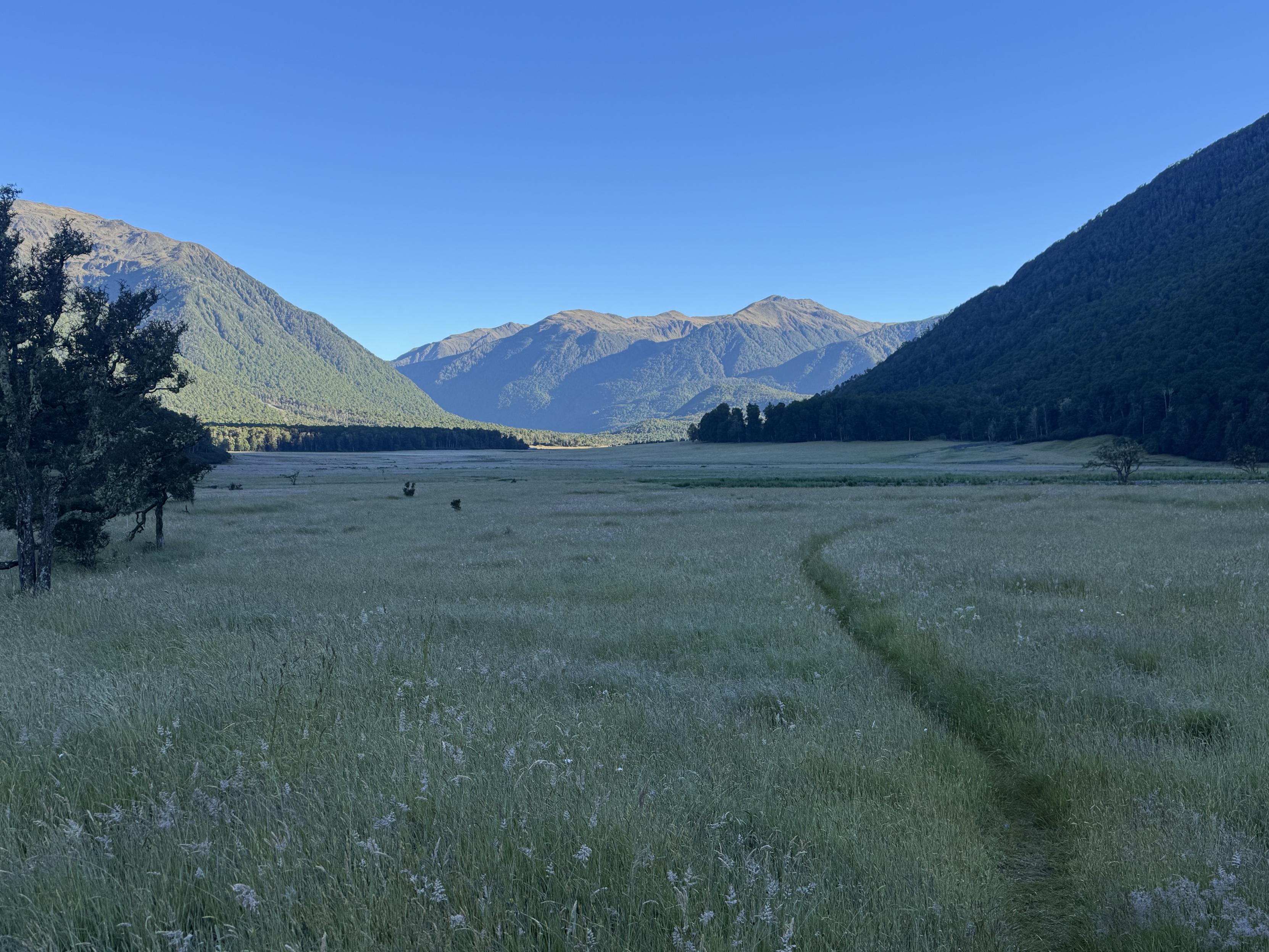 Nächster Teil des Haper Pass Tracks: Morgenfrost, viele Flussdurchquerungen, Sonne, unklare Wegmarkierubgen durch Wälder, weggespülte Wege, Hängebrücken und volle Hütte.